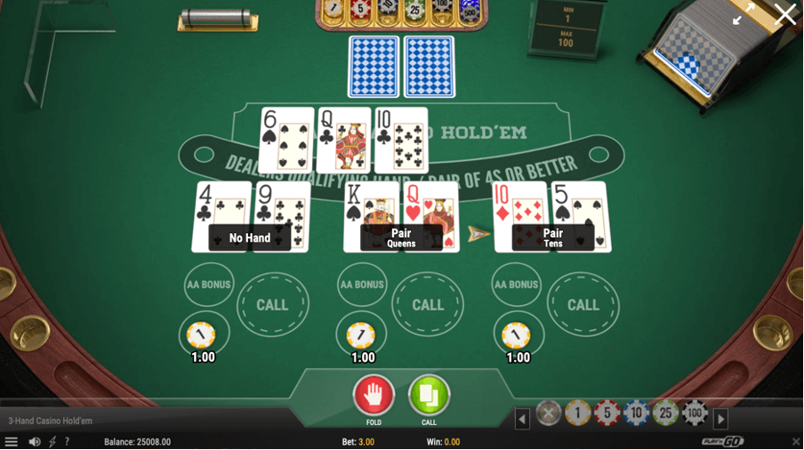 Play n Go is yet another top-rated choice for some of the best real money and free online Poker games. Their 3-Hand Casino Hold’em Poker game allows you to wager on up to three hands at a time. The game follows standard Texas Hold’em rules and provides multiple betting options. To enjoy the table version of free Poker, this is certainly a great place to start.