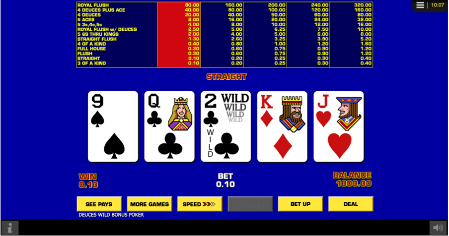 4. Deuces Wild Video Poker
